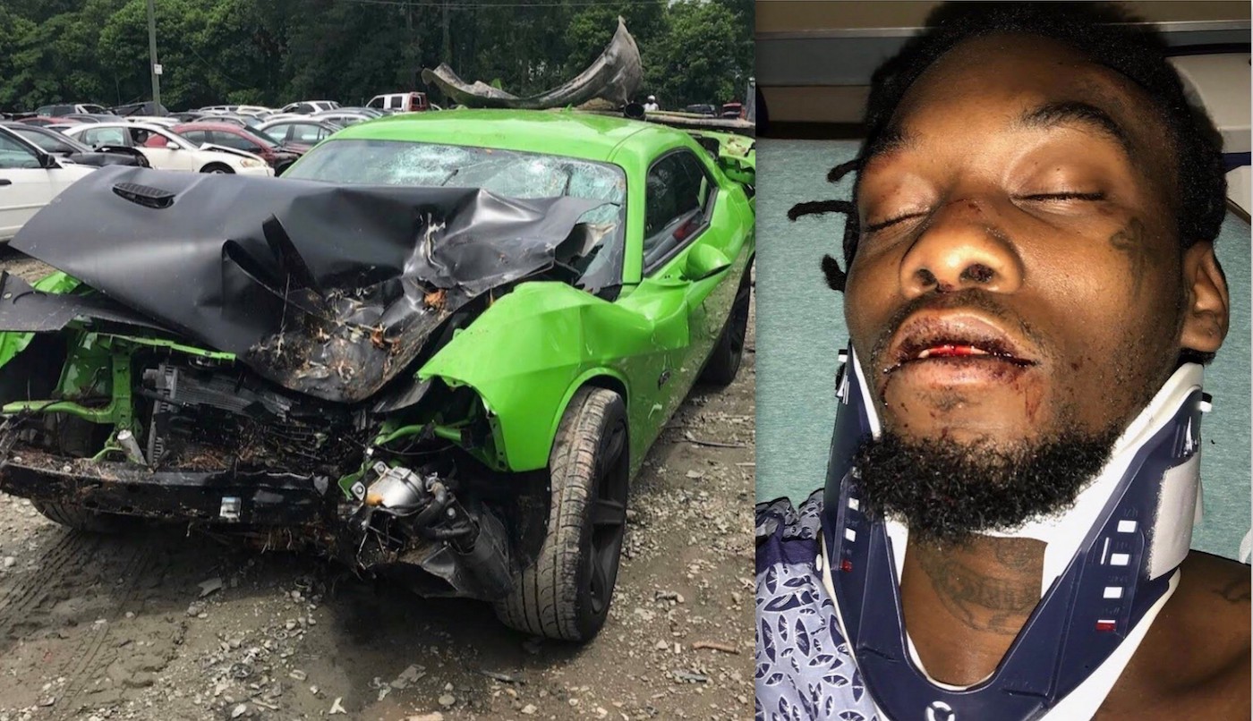 The wreck was so bad Offset had to go to the hospital where his hand was bandaged. It's unclear exactly what jamar did, but Offset says he got him to his destination safely. As for Jamar's new whip.. it appears to be a Nissan Altima.
