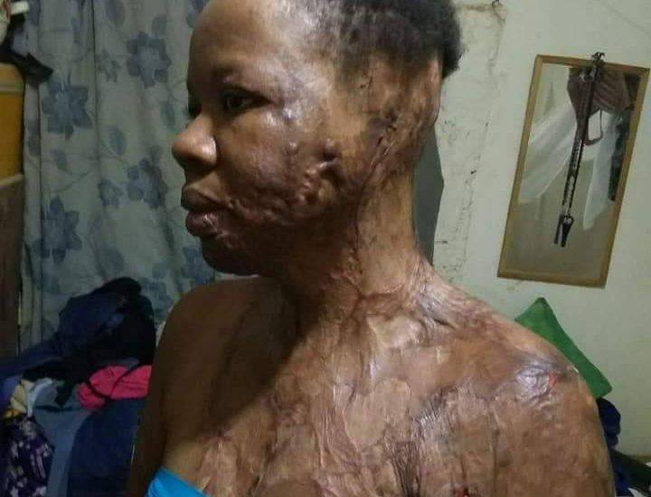 Jane has reportedly undergone 5 surgeries worth over a million so far, she lost her ears during the process, she still has a contracture on the neck, and then the left hand, her hair has been damaged as you can see in the image.